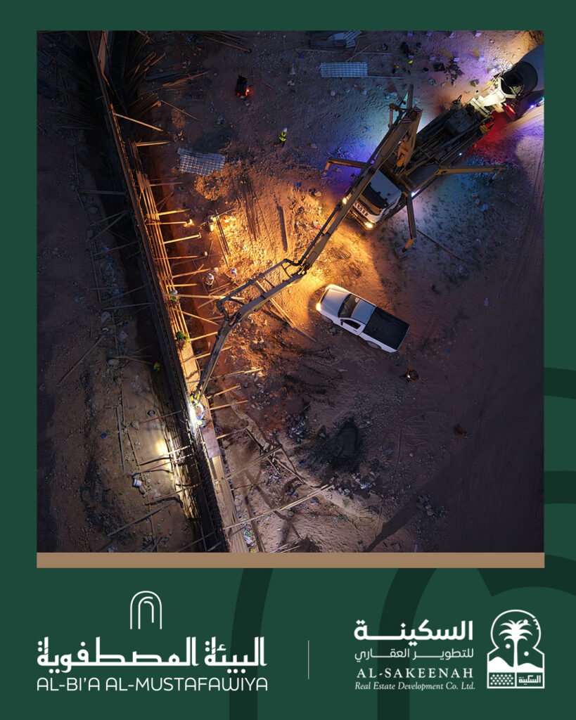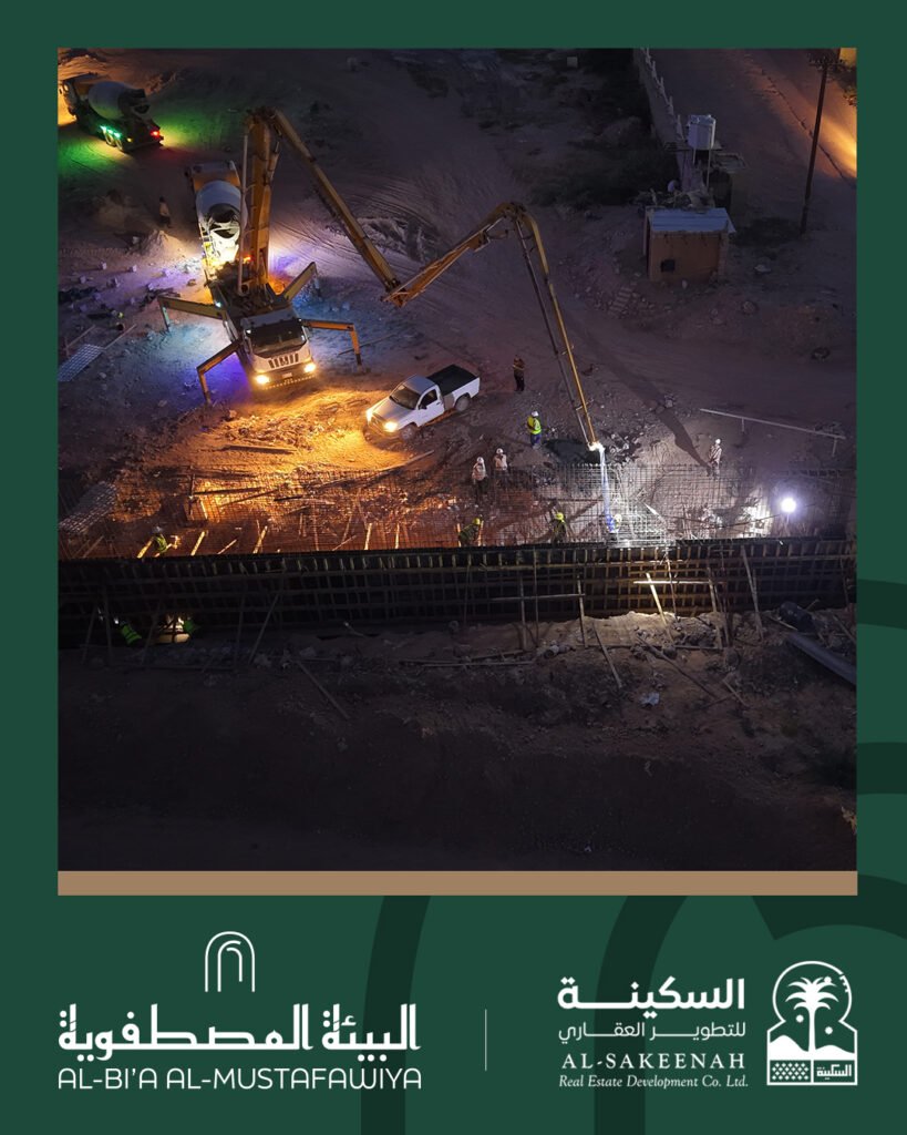 تم بحمد الله يوم الأحد 5 أكتوبر لعام 2025 أعمال صبة جدار السور الشمالي المقطع الاخير لمشروع مجمع البيئة المصطفوية …