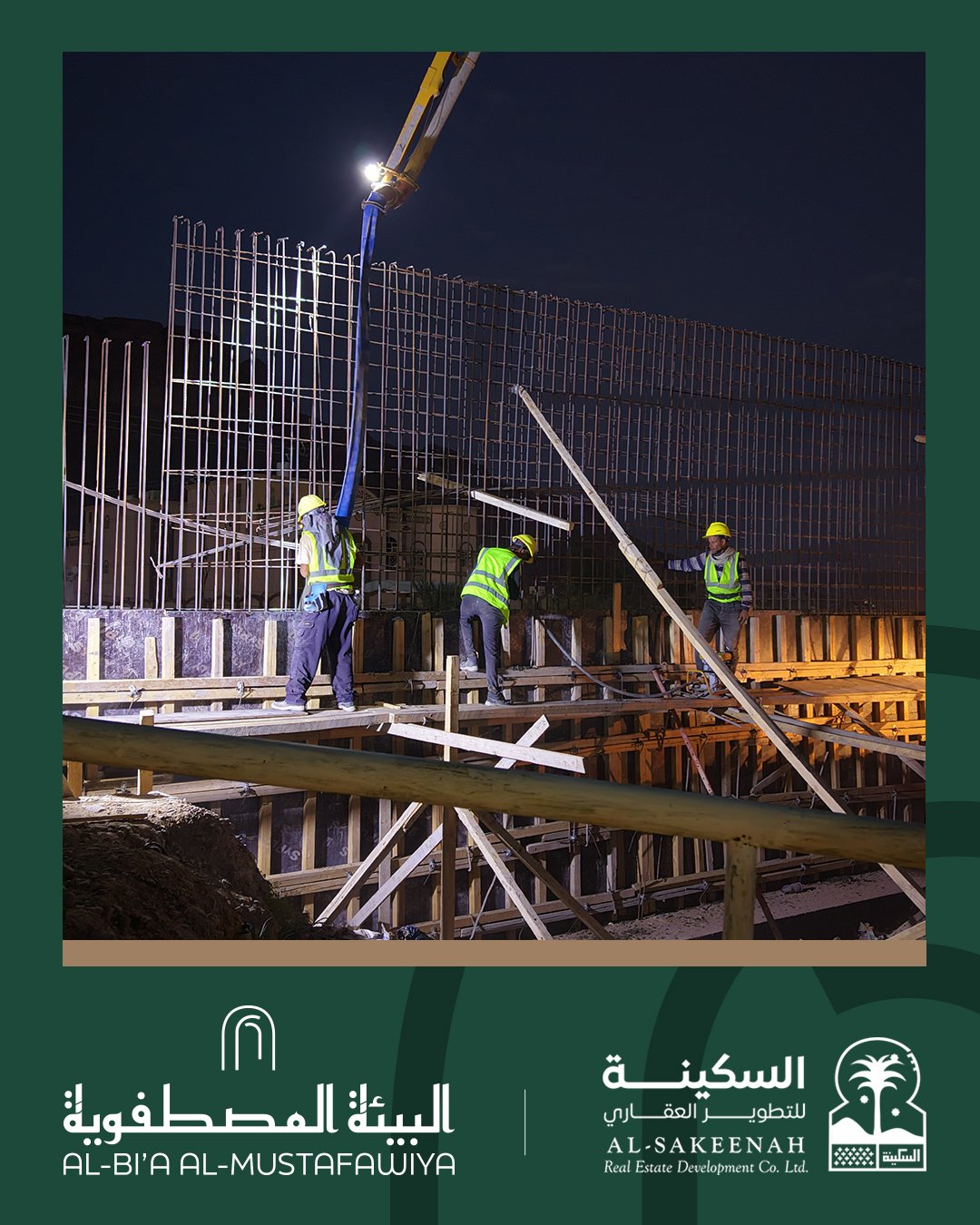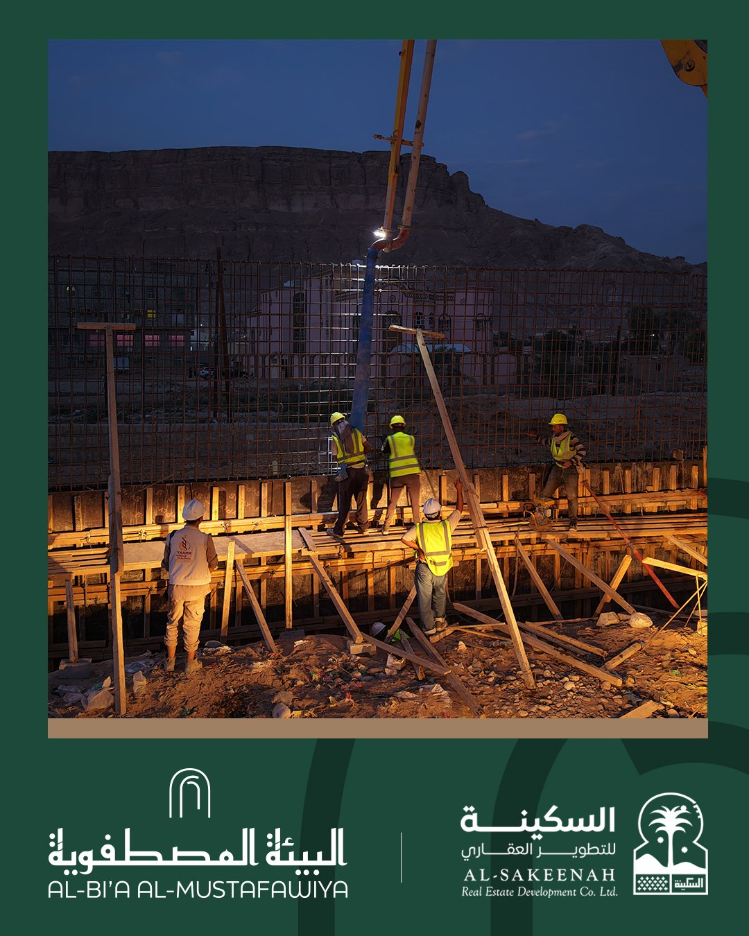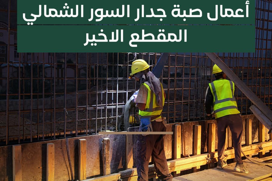 تم بحمد الله يوم الأحد 5 أكتوبر لعام 2025 أعمال صبة جدار السور الشمالي المقطع الاخير لمشروع مجمع البيئة المصطفوية …